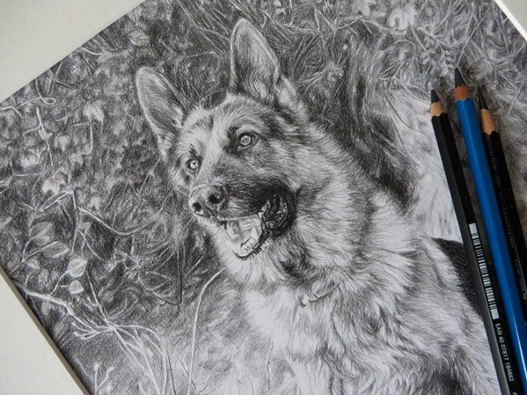 This is my latest pet portrait to come off the easel. I posted it a couple of days ago to a client in Navan, county Meath. She was delighted with the drawing of her boyfriend’s german shepherd called Bruce (what…