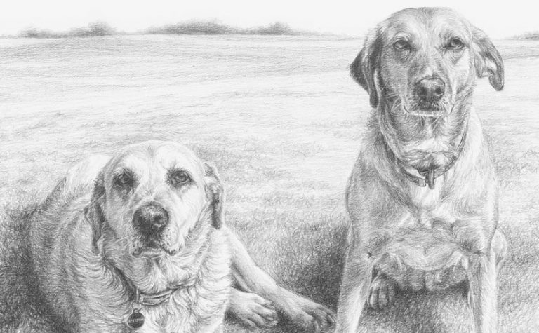 This is a brand new drawing to come off my easel. It is of two golden labradors called Zuva and Pip. The portrait was commissioned as a gift for their owner. Zuva is the older dog lying down and is…