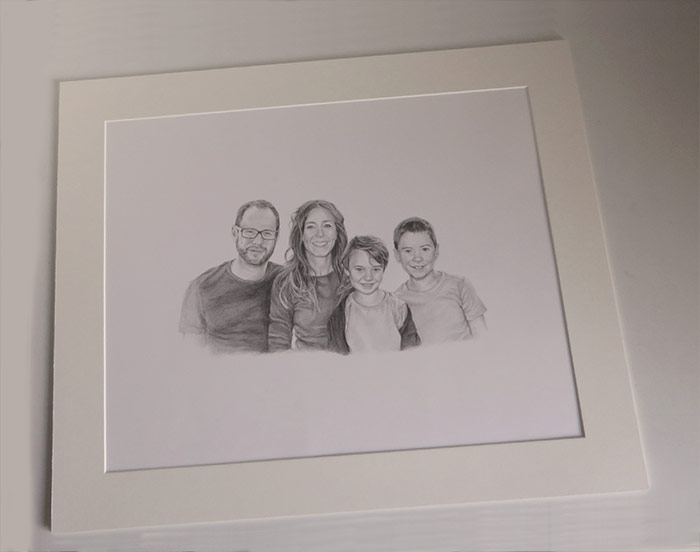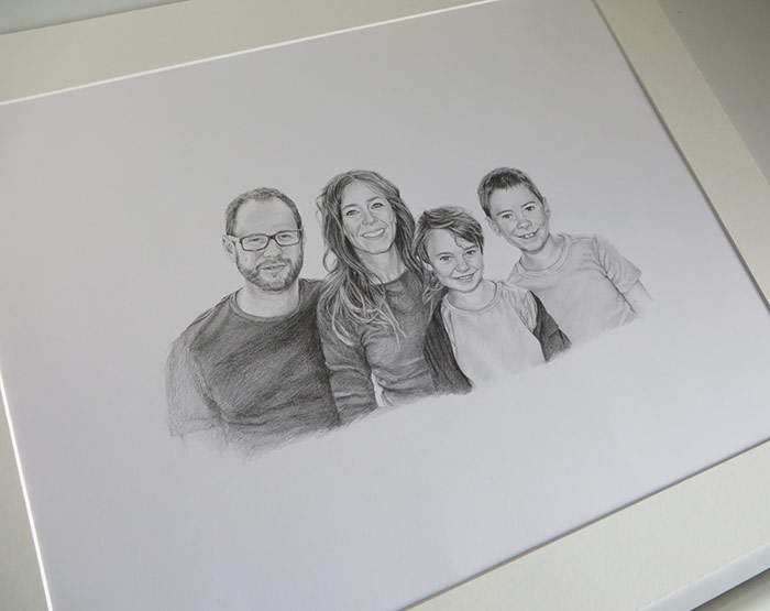 This is a family portrait I worked on a few weeks ago. The portrait was commissioned as a birthday present for the mum in the picture by her husband. I had a lot of photographs to go by which made it much easier for me to capture everyone’s likeness.