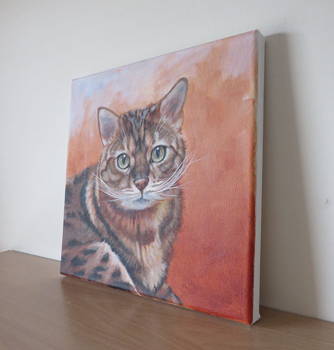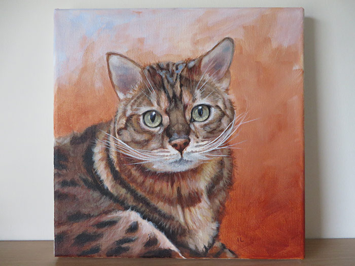 I completed this portrait a few weeks ago. Things have been so busy in the studio, I haven’t had the time to update the blog. This is a painting of Isean, the lovely ginger cat. His owner commissioned the portrait as a keepsake. The painting was painted with acrylics on stretched canvas 30 x 30 cm in size. The client was very happy with the end result: