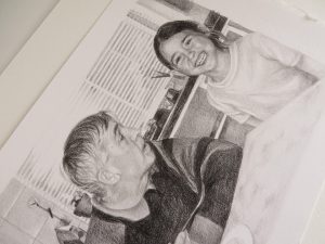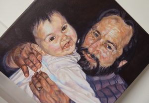 This is a portrait of Ken who is about to retire from his job. His co-workers decided to commission a painting of him and his horse as a retirement present. The painting is 30 x 40 cm in size painted with acrylics on stretched canvas. I had one photograph to work from with a couple of additional photos for Ken’s face which was hard to see in the reference. The photo was not too detailed which lended itself to a looser painterly portrait.