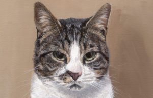 This is an acrylic painting of a collie called Theo and a pomeranian cross Jess. It was commissioned as a 40th birthday present for my client’s wife. I painted their dogs’ portrait in May this year. The client wanted the two dogs in one painting with a blurred shaded background and for the dogs to be the focus of the portrait.