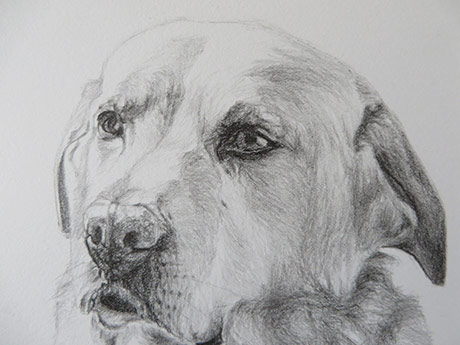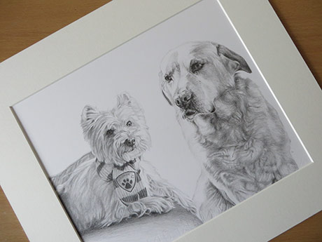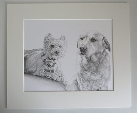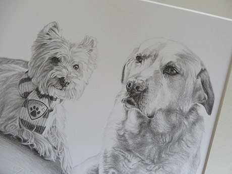 This portrait is another one commissioned for last Christmas. It was of two lovely dogs called Jake, the yorkshire terrier and Sam, the golden labrador. I had some good photos of Jake. Sam sadly passed a long time ago and I only had some small photos of him. The clients were very keen on showing both dogs together in one drawing for their father, so we made it work. It worked out quite well with Jake sitting up on the arm of the chair and Sam sitting beside, their heads being at the same level.