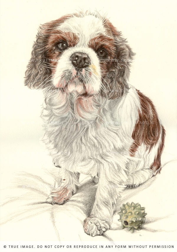Today, I have finished working on Holly’s portrait. I think it worked out quite well, hopefully the client will like it too 🙂 Holly is a beautiful King Charles and her portrait is drawn with pencils on paper. It is 8 x 12 inches in size.