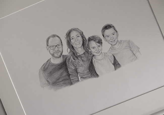 This is a family portrait I worked on a few weeks ago. The portrait was commissioned as a birthday present for the mum in the picture by her husband. I had a lot of photographs to go by which made it much easier for me to capture everyone’s likeness.
