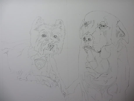 This portrait is another one commissioned for last Christmas. It was of two lovely dogs called Jake, the yorkshire terrier and Sam, the golden labrador. I had some good photos of Jake. Sam sadly passed a long time ago and I only had some small photos of him. The clients were very keen on showing both dogs together in one drawing for their father, so we made it work. It worked out quite well with Jake sitting up on the arm of the chair and Sam sitting beside, their heads being at the same level.